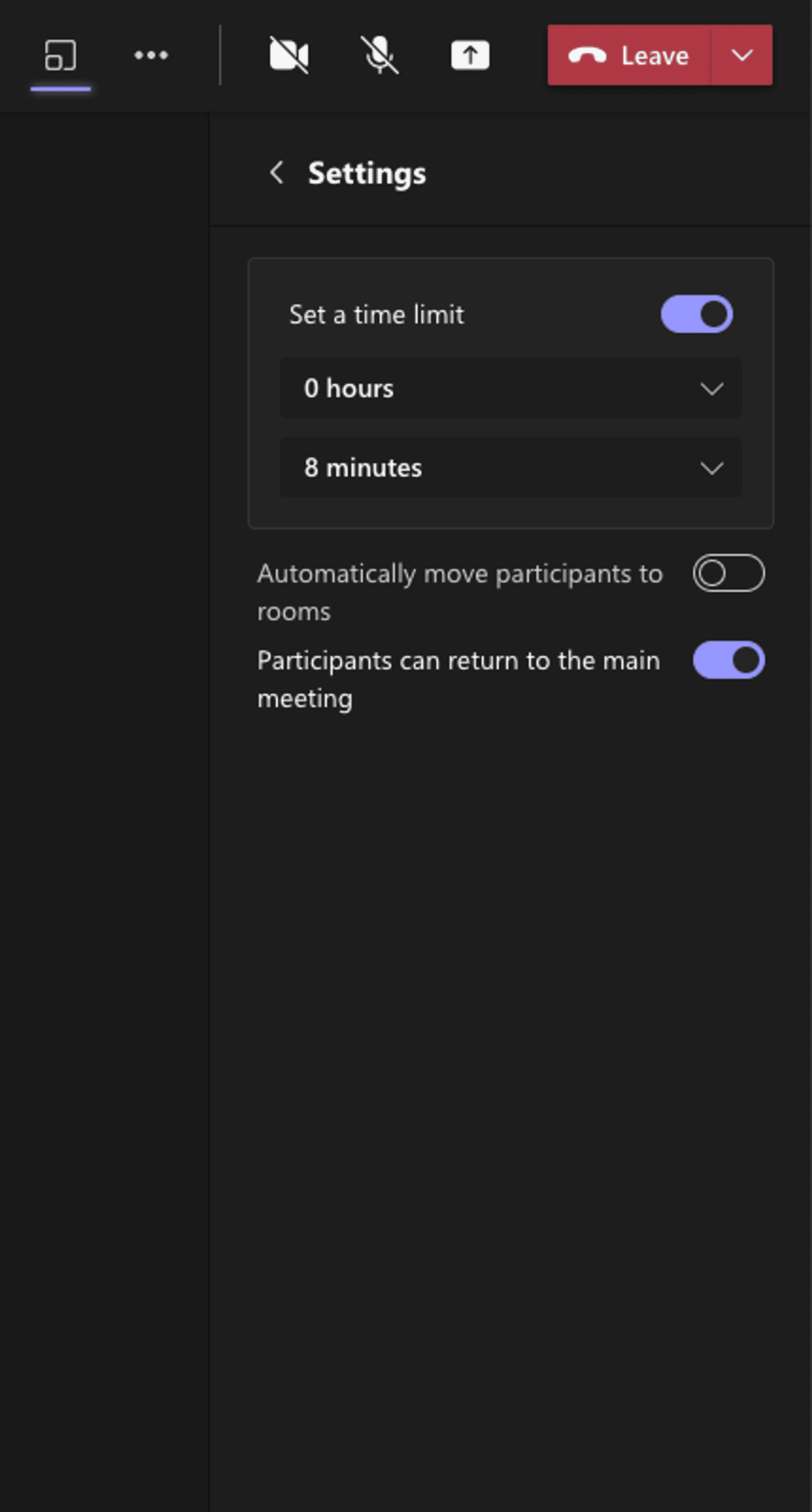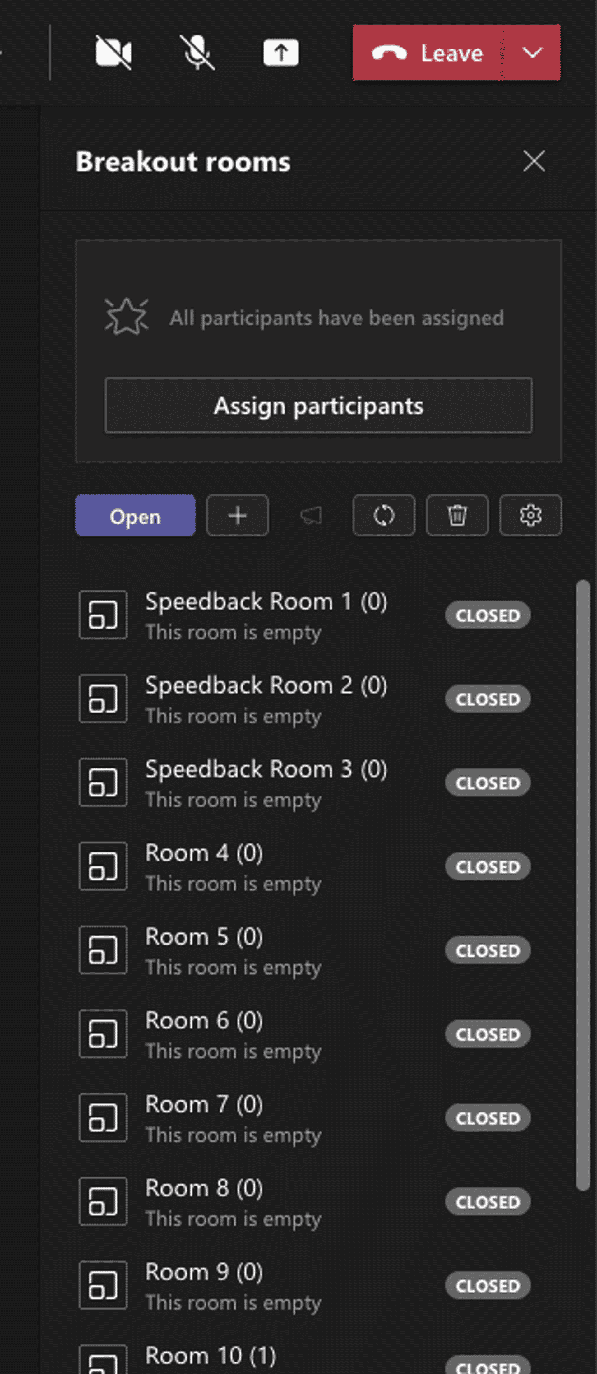 - Agree a suitable duration for each round. I found five minutes too short and 10 minutes quite loose — eight minutes seemed about right. MS Teams has a setting for enforcing this with a countdown timer in each breakout room.